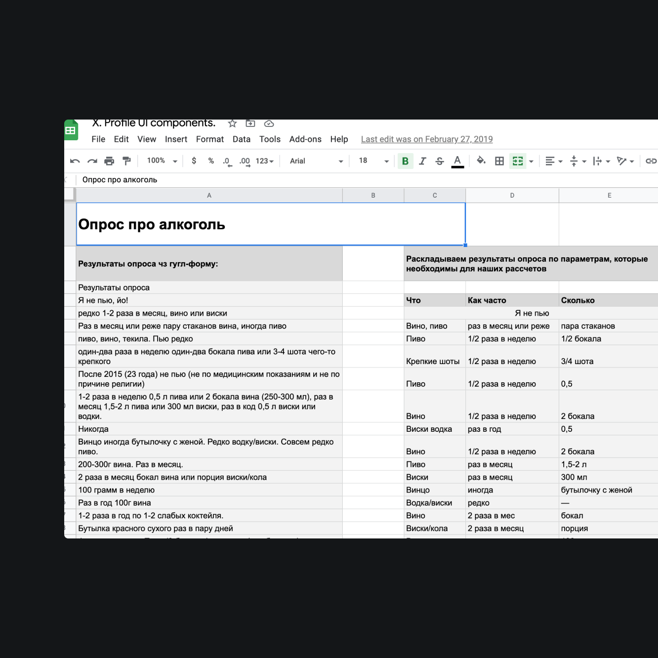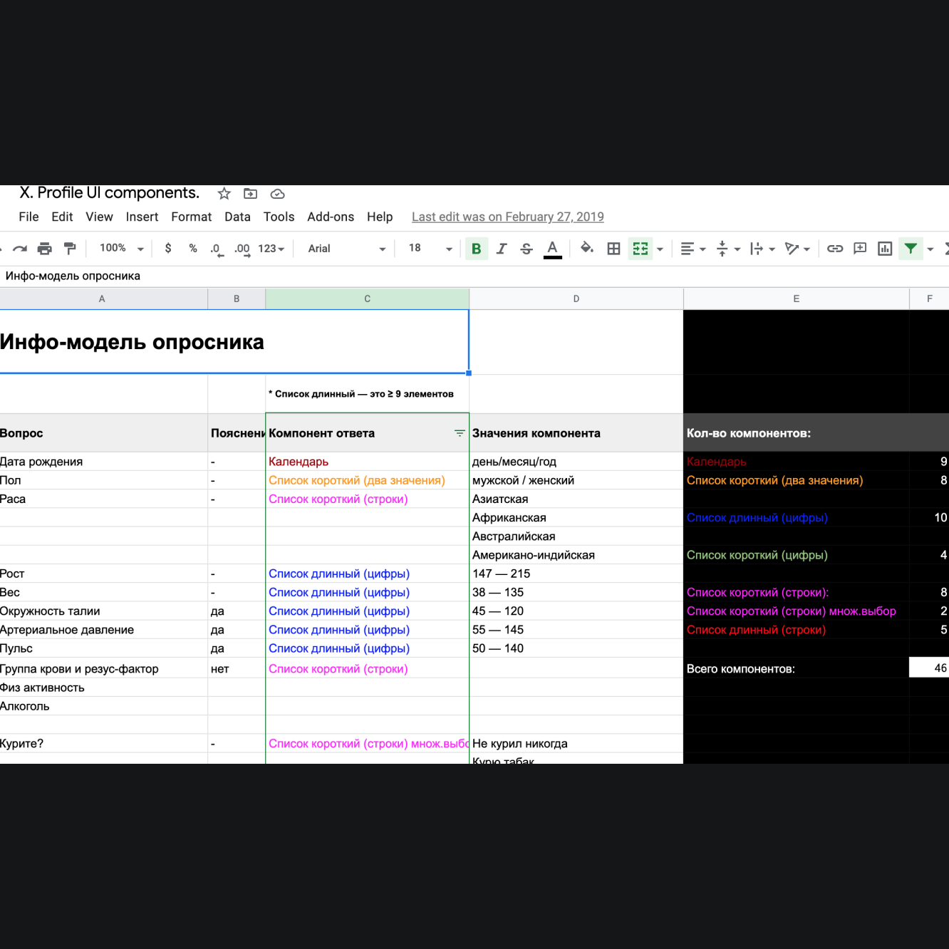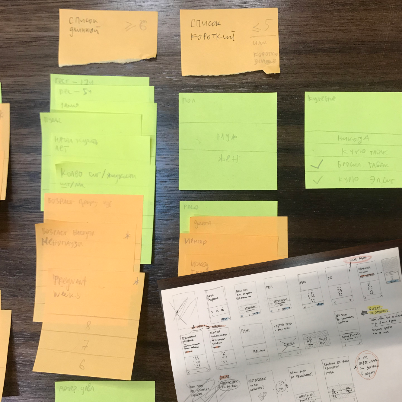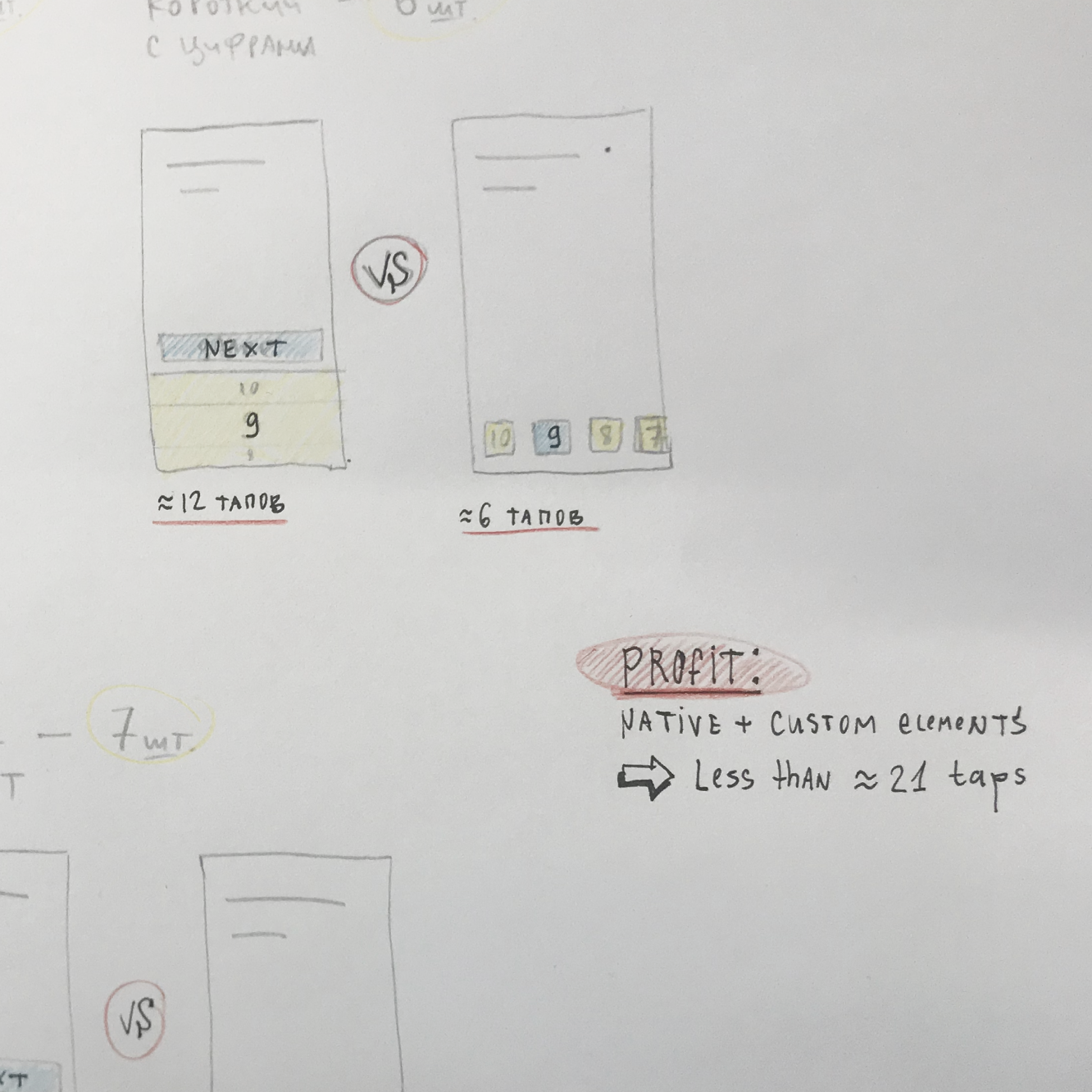 На основе результатов исследований можем подобрать наиболее эффективные ui-компоненты и паттерны их использования. Для этого, все вопросы типизируем, делаем простые прототипы компонентов на стикерах, согласно этим типам и анализируем удобство каждого типа. Метрикой удобства использования компонента считаем количество тапов